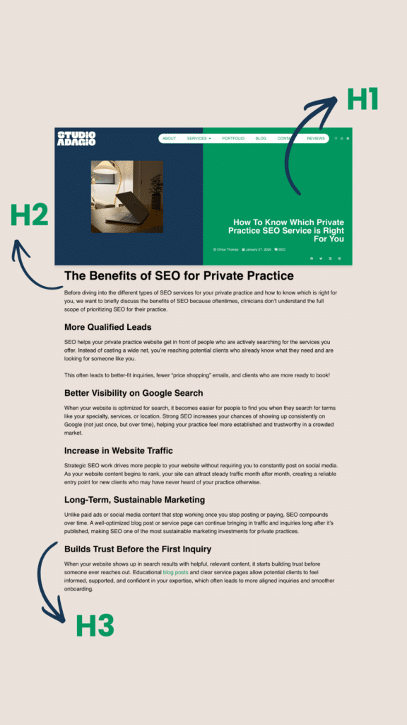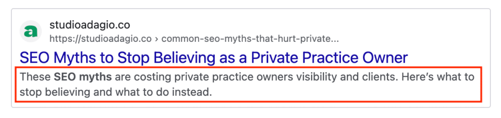 At Studio Adagio, we primarily serve private practice clinicians, so local SEO is a huge topic we focus on, since many private practices have a heavy local client base.